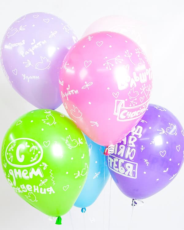 Шары с шелкографической многоцветной печатью и оригинальными дизайнами станут идеальным украшением праздничного торжества и поднимут настроение в любое время года.